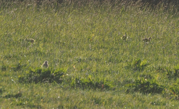 In one field there were 3 chicks (~7 days old) in the grass with their parents.