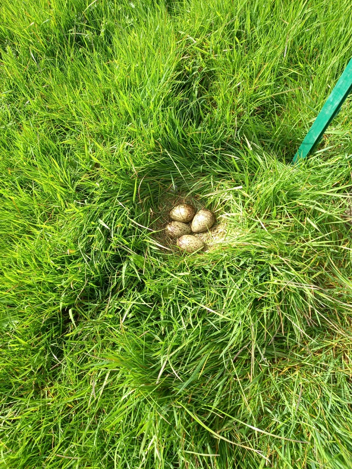 On 15 June Adam Benson had let us know he was planning to mow one of their other fields with a nest. The nest had been fenced; the chicks had hatched and were 4-5 days old.